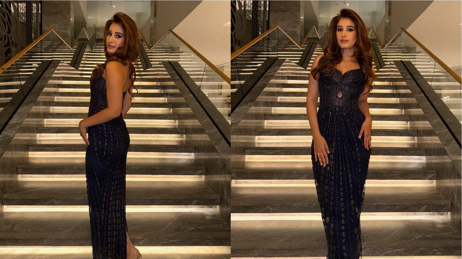 Trading the sunlight for starlight, Rasha turns into a nocturnal vision in the “Celestial Allure” gown by the iconic duo Rohit Gandhi and Rahul Khanna. This look moves away from softness and toward structured, high-fashion seduction.