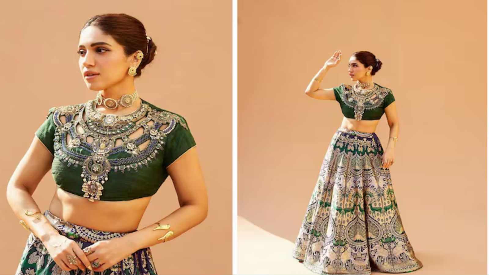 Bhumi Pednekar is currently on a mission to win the maximalist fashion Olympics. Promoting her film Mere Husband Ki Biwi, Bhumi stepped out in a “Hasli” blouse by Pankaj S Heritage that had everyone talking. It was “Vana Shringharam”, a romantic juxtaposition of vernacular jewellery pieces collected from across India.